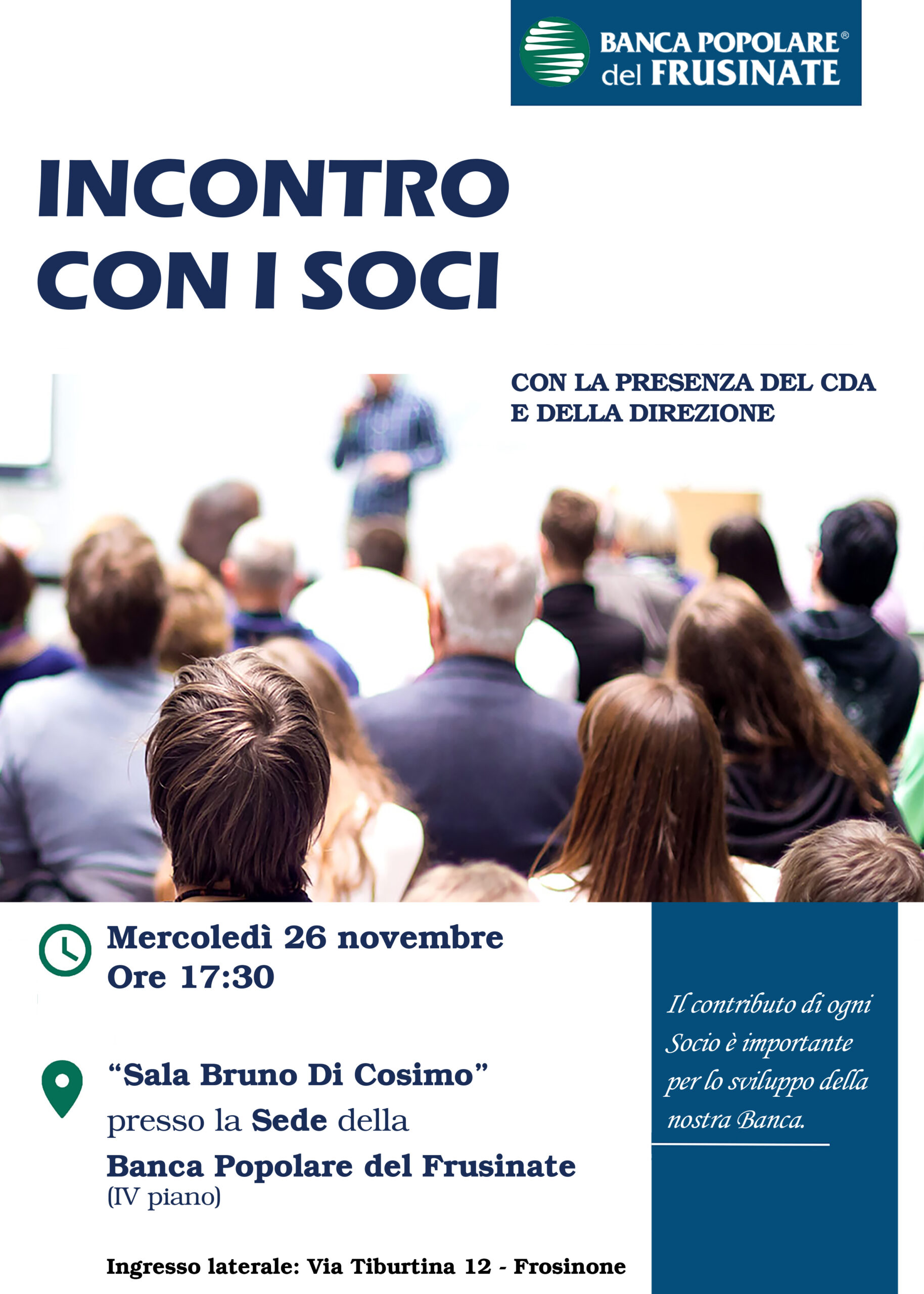 presso la “Sala Bruno Di Cosimo” sita al IV piano della Sede centrale di Banca Popolare del Frusinate